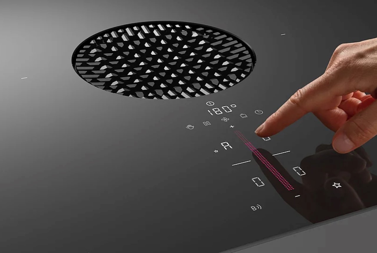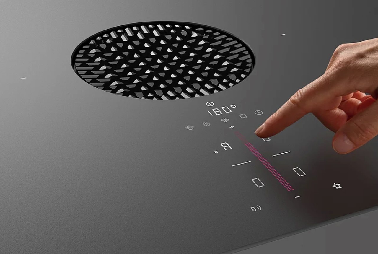 • VÝRAZNÝ DESIGNVarná plocha a krytka digestoře jsou dokonale plošně zarovnané. Výrazný design se vyznačuje jasně definovanými liniemi v kombinaci s ikonickou přívodní tryskou s kolíky. Ovládací displej umožňuje lepší orientaci díky třem různým barvám.